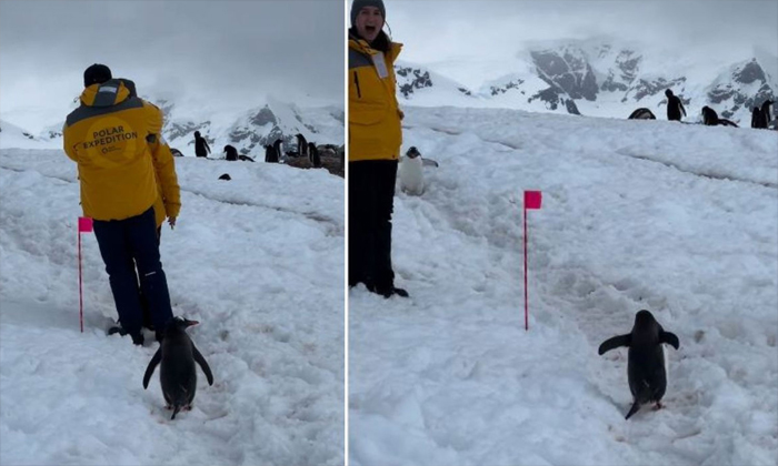 காதலர்களை தொந்தரவு செய்ய தயங்கிய பெங்குயின்